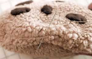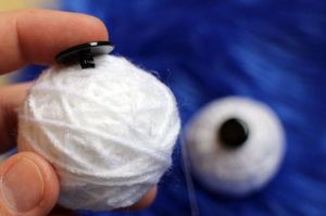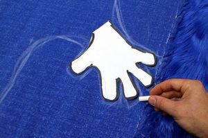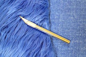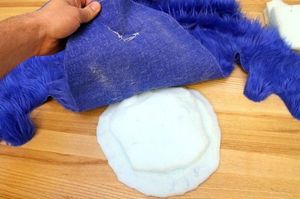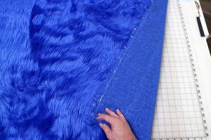 Самое сложное это подобрать нужный материал. Так как монстр синий, то и мех должен быть синим. Тут есть два пути решения этой проблемы: либо покрасить овечью шкуру в синий цвет, либо обойти все магазины с тканями и найти подходящий отрез меха.