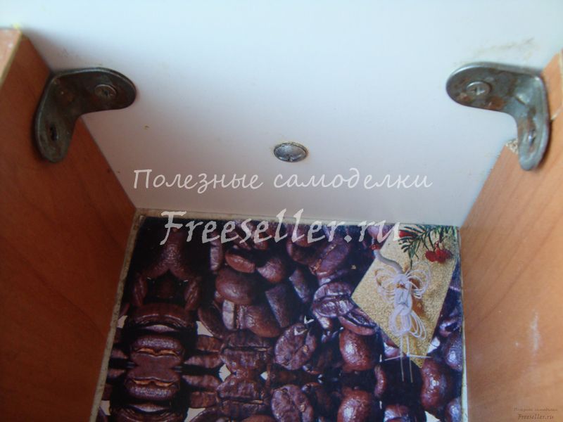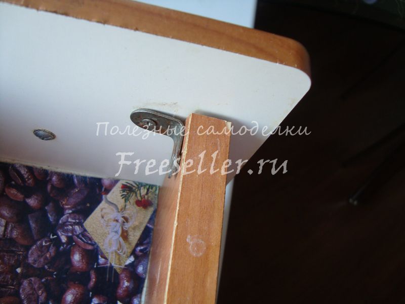 Один край крепится к боковой части ящика. в другой же стороне уголка делается метка с помощью шила, чтобы не сместить угол при прикручивании.