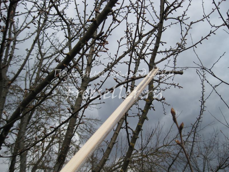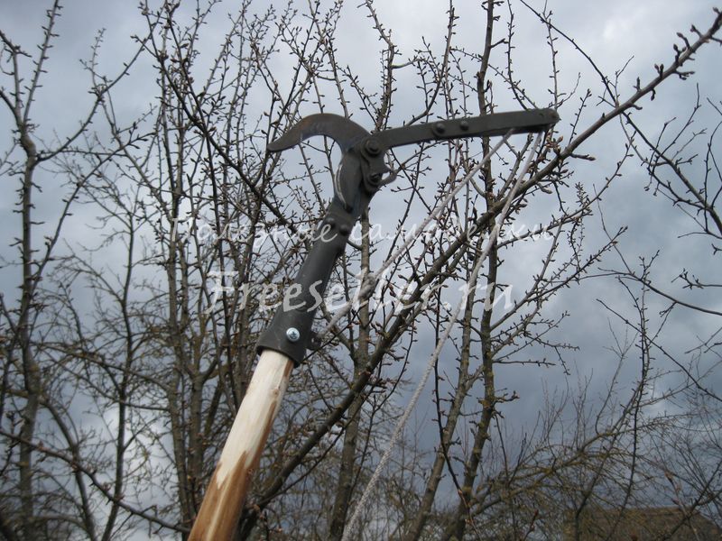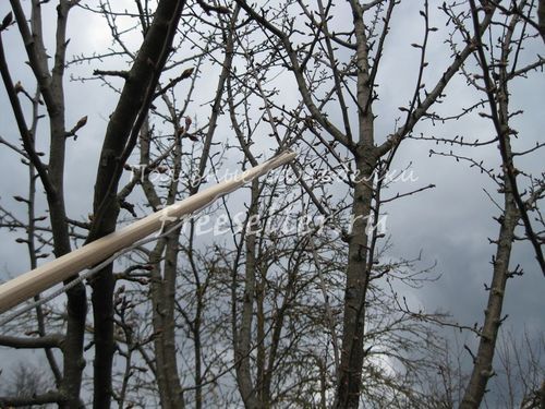 Причем поскольку у этих деревьев зачастую очень высокие кроны, то обрезку приходится проводить на достаточно большой высоте (от двух до пяти метров, а то и выше). При этом садоводы используют для обрезки ножовки на длинных штангах, или различные секаторы-сучкорезы, насаженные на длинные рукоятки, такие, как например, на фото ниже.
