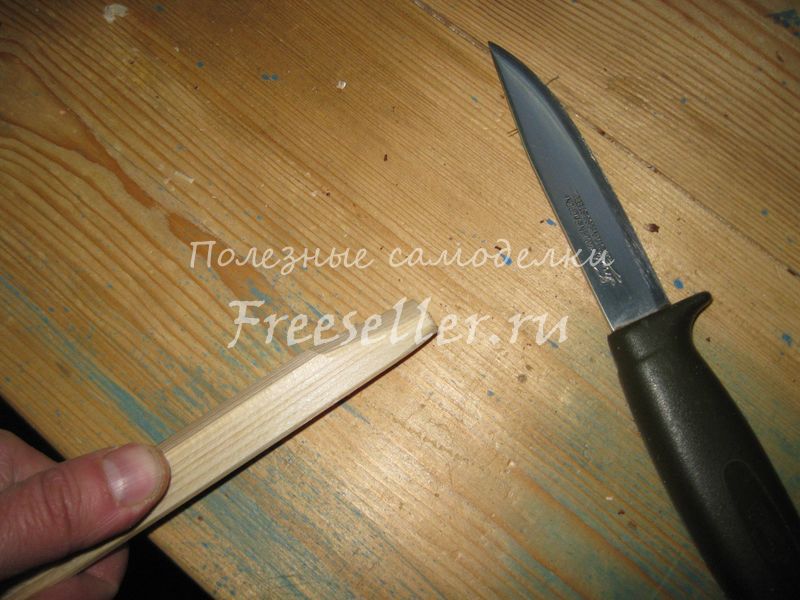 Сначала необходимо обстругать деревянный брусок, чтобы не занозить руки во время работы.