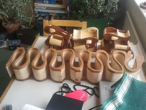 Из обрезков вырежьте ручки для ящиков и отшлифуйте их. Форма ручек может произвольной, главное, чтобы за них было удобно браться пальцами, чтобы вытащить ящик из ложа.