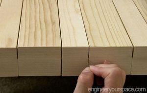 Нужно подсчитать, какое количество досок понадобится, чтобы покрыть верх. Если начальная длина скамейки была 89 см, то конфигурация досок будет следующей:
