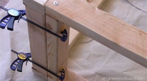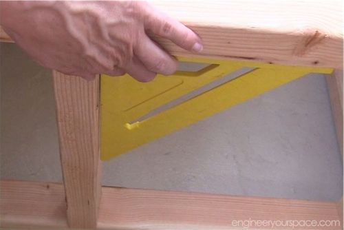Чтобы доски держались вместе необходимо использовать металлический уголок. Используйте специальную треугольную линейку, чтобы доски стояли под углом в 90 градусов.