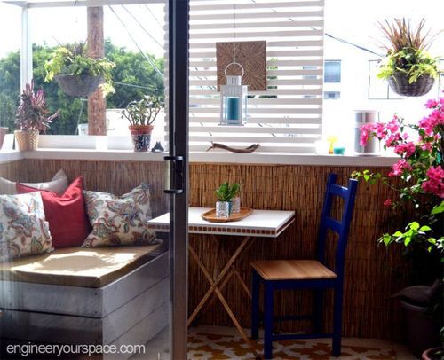 Если квартире очень маленький балкон, и вы хотите по максимуму использовать его пространство, то вам будет необходима скамейка с ящиком для хранения вещей. С такой удобной скамейкой вы сможете устроить на балконе как столовую, так и гостиную.