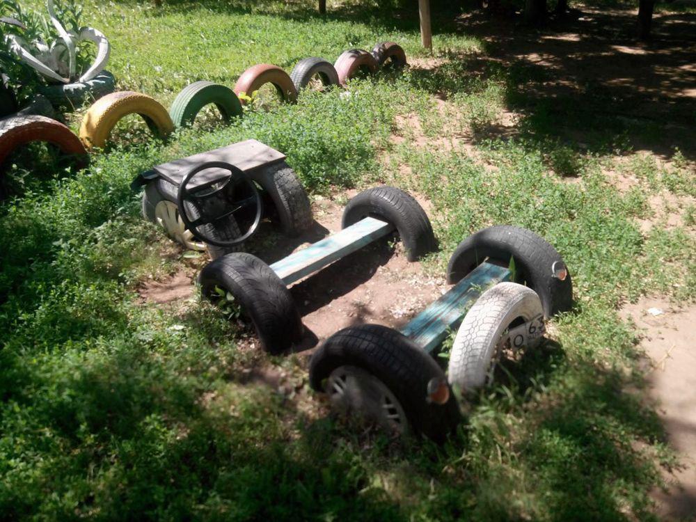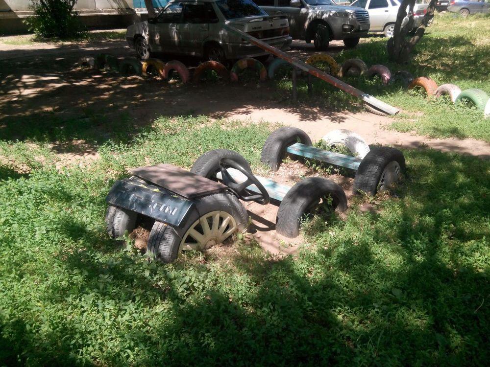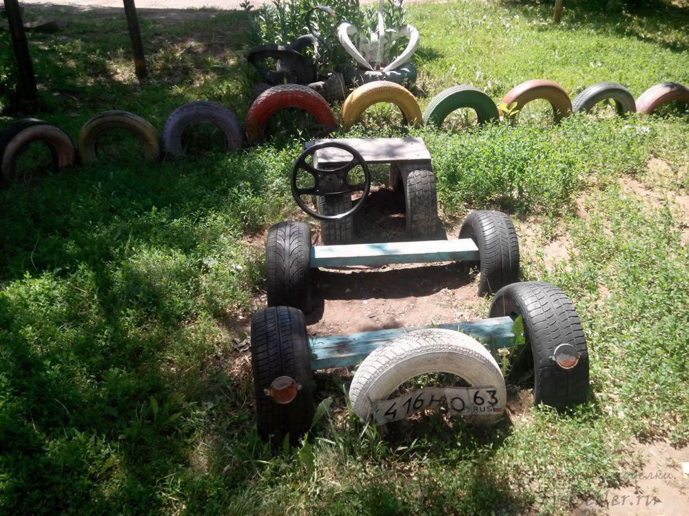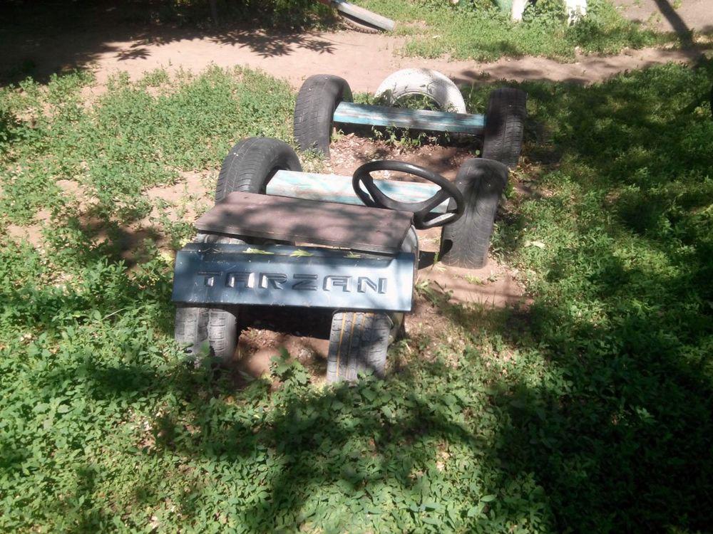 Детская дворовая машина из покрышек. Из старых автомобильных шин можно изготовить множество различных дворовых самоделок, вот например одна из них – дворовая машина для маленьких детей, люди которые ее собирали дали ей название «Тарзан».