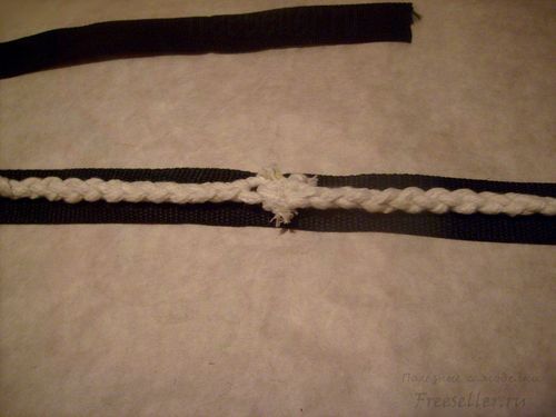 2. Отрезок толстой верёвки или шнура закладываем вовнутрь.