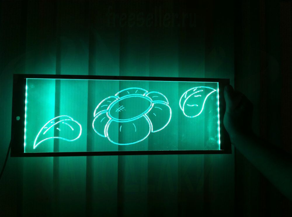 >-торцы слегка отполировал (для лучшей светопередачи), снял защитную бумагу и вставил в рамку. Оргстекло вырезал с таким рассчётом: высота чуть меньше внутреннего размера рамки, а длина на 6мм, т.к. ещё должна уместиться светодиодная лента с двух сторон ("бьющая" точно в центр торца). Стекло вклеил в рамку при помощи термоклея.