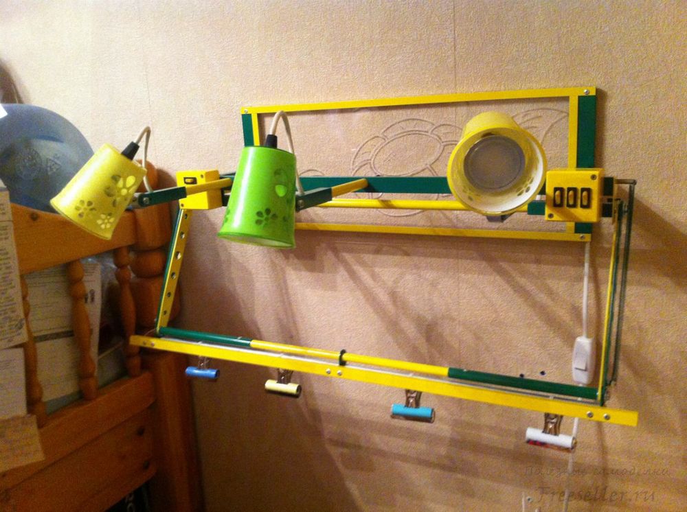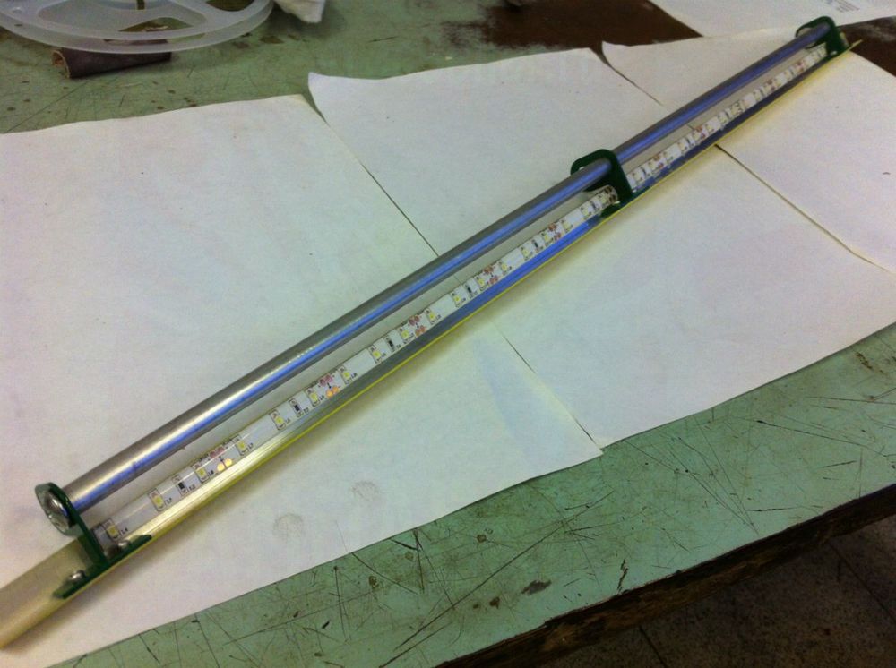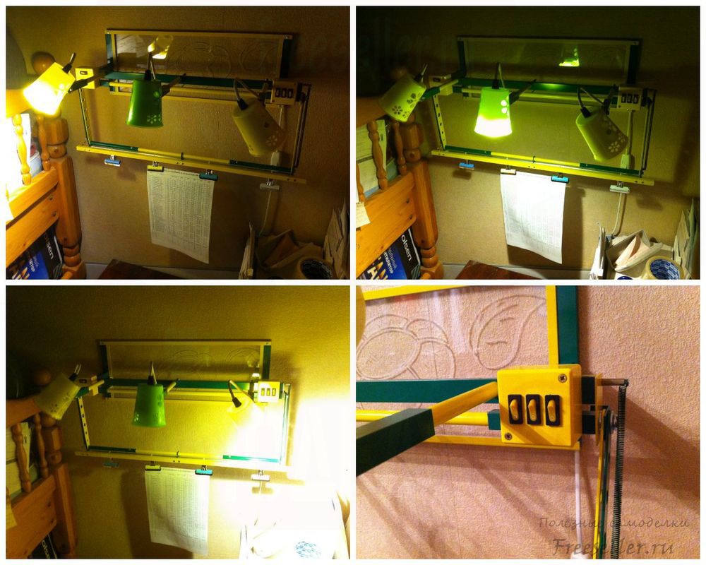 Снизу светильника изначально планировался регулируемый "подвес" с подсветкой и зажимами для документации.