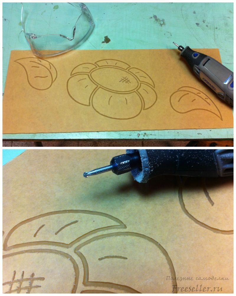 - чуть позже планы поменялись, решил усложнить себе задачу - почему бы не сделать гравировку на оргстекле и не подсветить!? Оргстекло было запечатано с двух сторон бумагой. Его толщина 4мм. Нарисовал по-новой рисунок и прошёл фрезой, приблизительно на глубину 2-3мм.