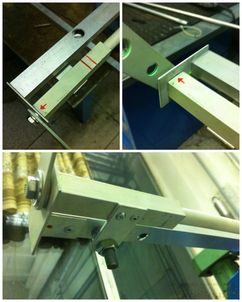 Плюс алюминиевых деталей - легкая конструкция и быстрая обработка, но минус - сложность соединения (при отсутствии аргоновой сварки). Поэтому, всё подбирал таким образом, чтобы внутренние и наружные размеры профилей совпадали по посадкам, например во внутрь квадратного 12х12 можно было вставить с лёгким натягом трубку с наружным диаметром 10мм. Забивной анкер М6 прекрасно запрессовал в трубку с наружным диаметром 10мм, а М8 в трубку 12мм. И т.д., и т.п..