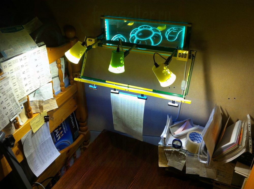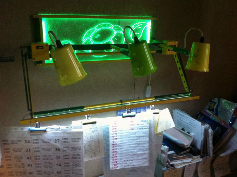 Вся история началась с того, что... мама работает медсестрой. И при очередном "завале" на работе, она берёт письменную работу на дом (амбулаторные карты, направления и т.п.). Света одной настольной лампы не хватало, да и при включении люстры глаза всё равно быстро уставали от тусклого света и кучи теней. Нужен был светильник с направленным и ярким светопотоком. Просмотрев кучу возможных "сВетИл ЛаМпАчЕк МаДе Ин ЧиИнА" и цен на них... решил пойти в стройгипермаркет.