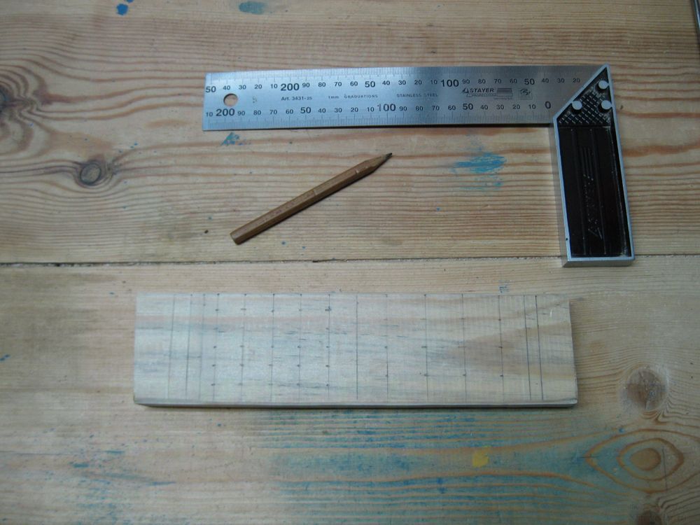 Сначала размечаем дощечку, из которой будем делать подставки.