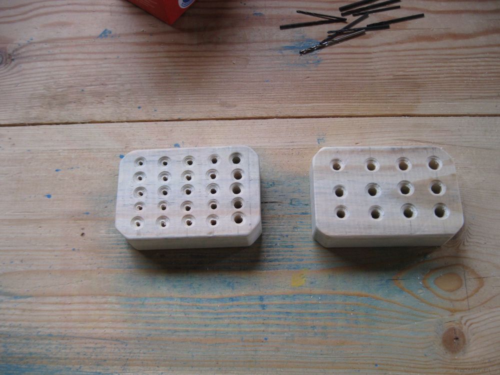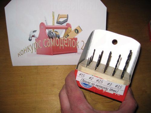 Кстати, хочу особенно отметить, что отверстия под сверла определенного диаметра, необходимо сверлить сверлами с несколько большим диаметром (примерно на 1-1,5 мм.). Так, например, отверстия под сверла диаметром 1,5 мм, я сверлил сверлом диаметром 2,5 мм, для сверла диаметром 2 мм, - сверлом диаметром 3 мм, и т.д. Это делается для того, чтобы сверла легко было вставлять и доставать из отверстий.