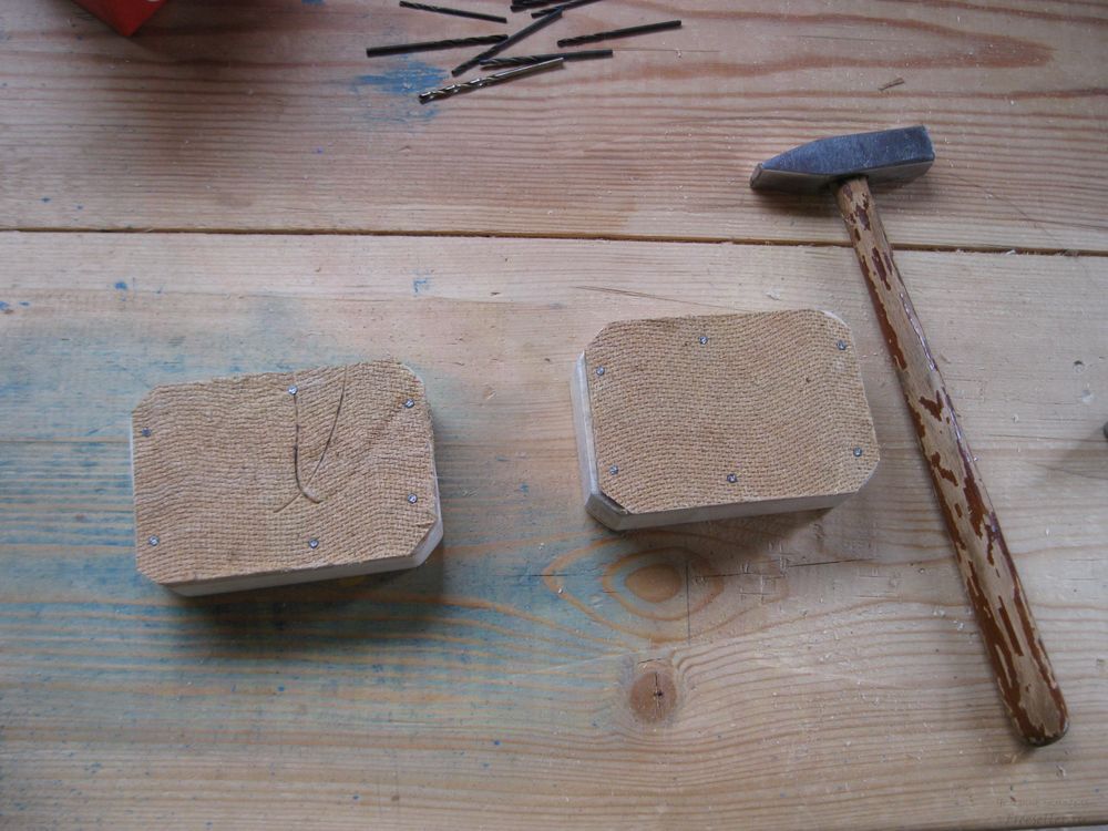 Затем я прибил их к подставкам маленькими гвоздиками.