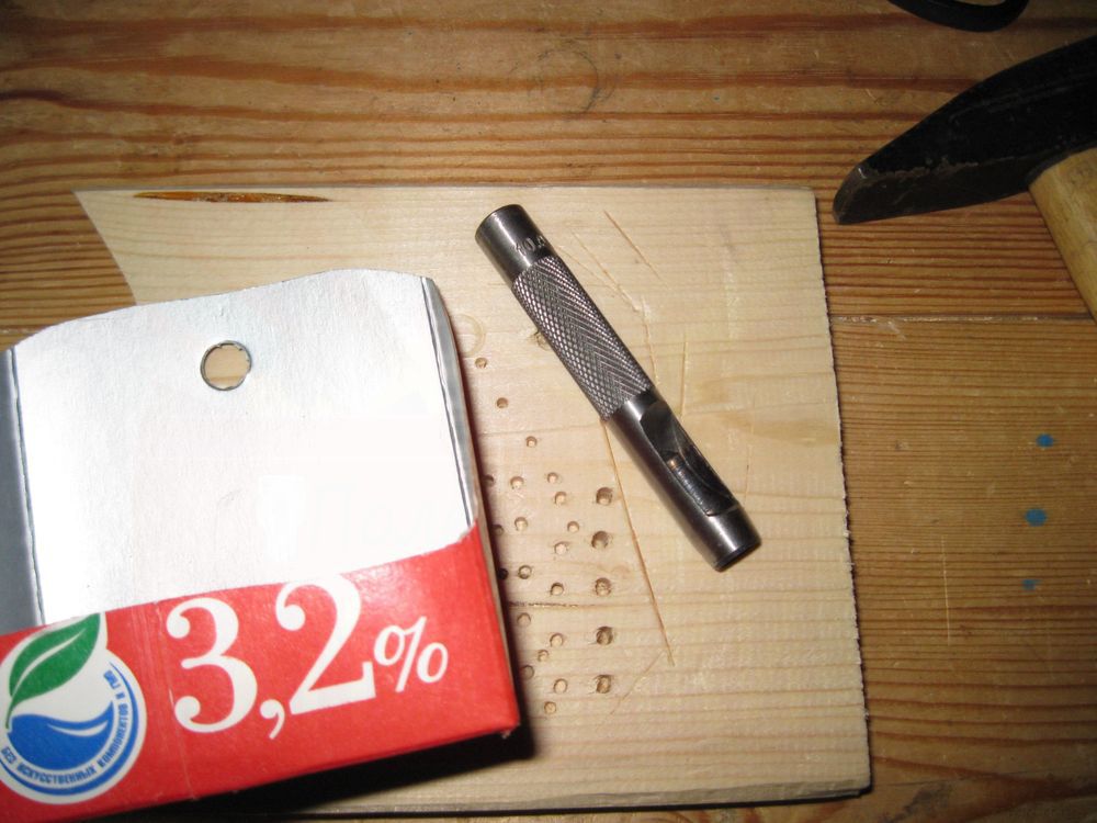 Затем делаем в задних стенках отверстия для подвешивания. Для этого я воспользовался пробойником. Но в принципе, если пробойника нет, то вполне можно сделать такие отверстия сверлом или канцелярским ножом.