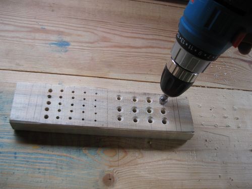 Далее накалываем центры будущих отверстий шилом и сверлим их сверлами разных диаметров.