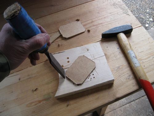 Донышки я изготовил из двух кусочков оргалита, подогнав их стамеской под размеры подставок.