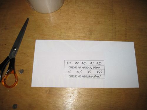 Я решил сделать на каждой картонной коробочке надписи для обозначения диаметров сверл. Для этого я сделал на компьютере, а затем распечатал на принтере, вот такие таблички.