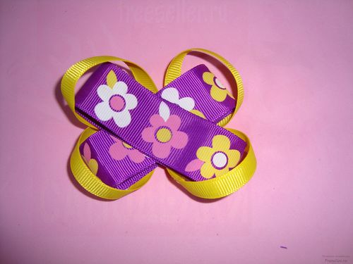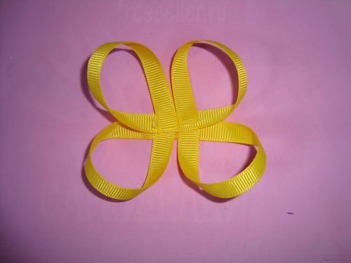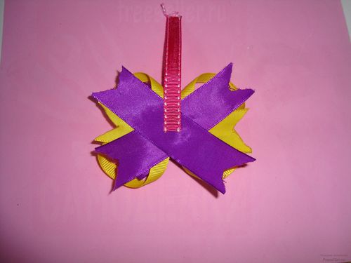 Середина банта фиксируется тонкой лентой, которая располагается поперек всех слоев.