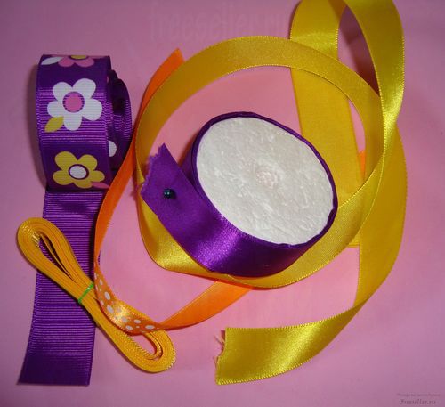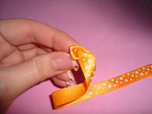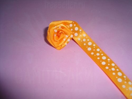 Из тонкой ленты контрастного желтого цвета необходимо создать завитки, которые добавят объем изделию и внесут яркость.