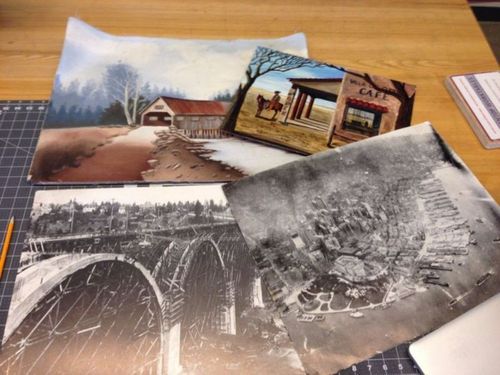 На столе резака распределяем картину, крайнюю точку выставляем и запускаем сам процесс резки.