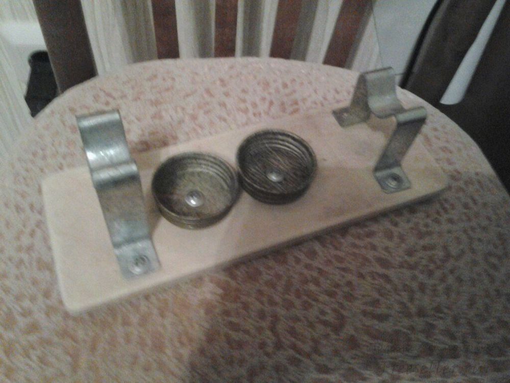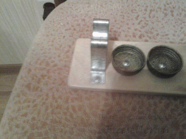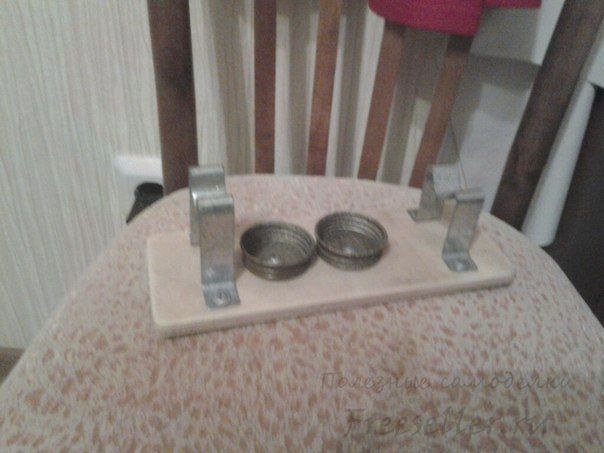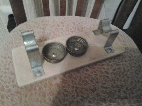 2 стальных советских формочек для изготовления самого держателя. Формочки разрезал ножницами по металлу, и выгнул из них 2 держателя нужной формы.