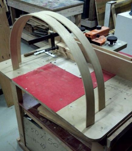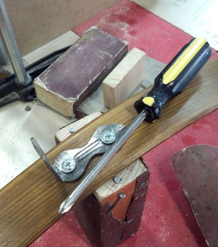 Для того чтобы согнуть дерево необходимо иметь ремень и шкив с рычагом.