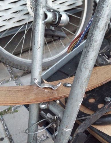Переднее крыло должно быть крепко прикручено, т.к. оно крепится только к вилке. В инструкции используются крепления от старых пластмассовых крыльев. Они стальные и будут крепко держать деревянные крылья. Для заднего крыла стальные детали необязательны, потому что оно крепиться в двух местах: к стойке и к раме.