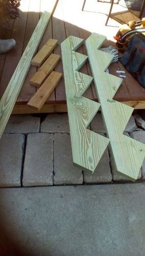 К задней стороне лестниц прикрепите два коротких бруска. При соединении бруса в верхней части сбоку должен получиться квадрат. Для фиксирования конструкции можно использовать только 1 винт с каждой стороны.