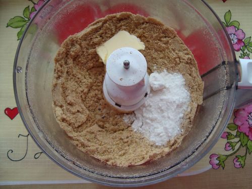 В чашу комбайна выложите печенья, заполнив емкости не более, чем на две третьих части. Если вы засыпите печенья доверху - оно плохо перемелется.