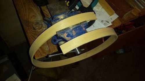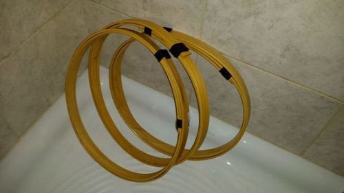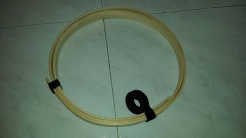 Samba - это мягкая древесина. Два с половиной метра этого материала можно с легкостью скрутить в кольцо, намочив его в воде. Фиксируйте обороты с помощью липучки. Получившееся кольцо должно иметь диаметр, немного меньший, чем ваш руль. Фиксаторы можно будет удалить после высыхания древесины. В данном проекте были использованы 4 планки длиной 2,5 м.