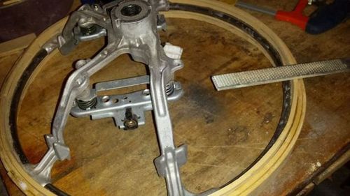 Деревянные детали отшлифуйте с помощью наждачки или специального оборудования. Поставьте на место модуль воздушной подушки.