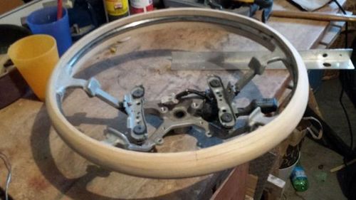 Первым делом, нужно удалить с рулевого колеса кожаное покрытие, оставив лишь механический остов.