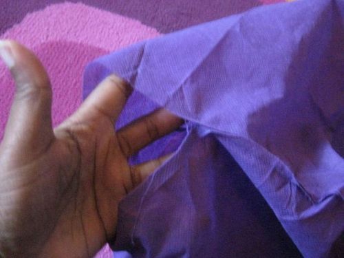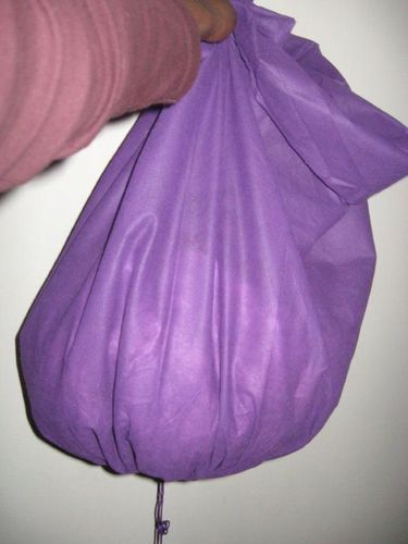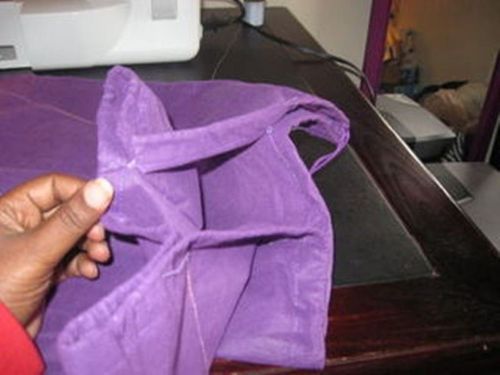 Аккуратно разрежьте нити шва, на котором крепится дно мешка. Так же распорите мешок сбоку, только очень аккуратно. Выверните мешок наизнанку и сделайте новые продольные швы. Снизу нужно оставить отверстие, по размеру позволяющее продеть в него руку. В него будет втянут шнурок, позволяющий затянуть дно.