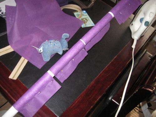 Для того, чтобы закрепить мешок на трубе, нужно сделать держатели из ткани. Материал довольно тонкий, поэтому лучше делать петли в несколько рядов, чтобы мешок не съезжал под тяжестью начинки.