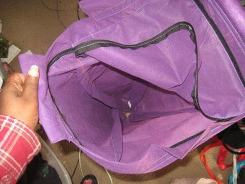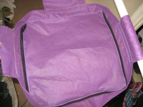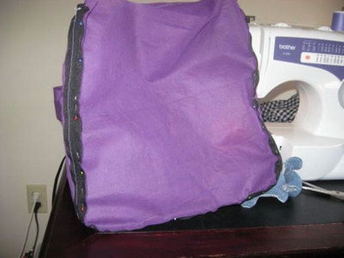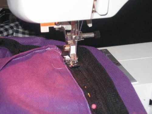 Для того, чтобы закрепить крышку, необходимо вшить молнию, по периметру она пройдет через три стороны. Молния, таким образом, придаст мешку форму корзины и даст дополнительную жесткость. Молния пришивается изнутри.
