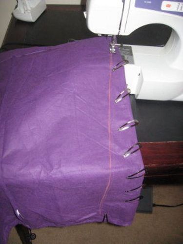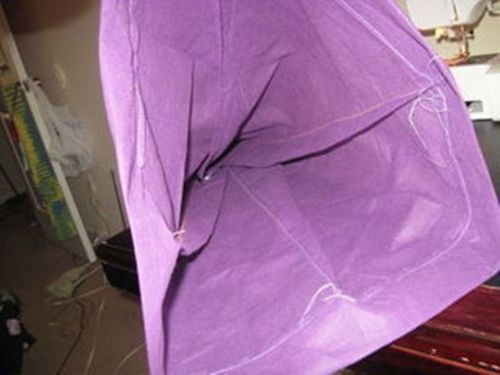 Мешок сшивается таким образом, чтобы он имел V-образную форму.