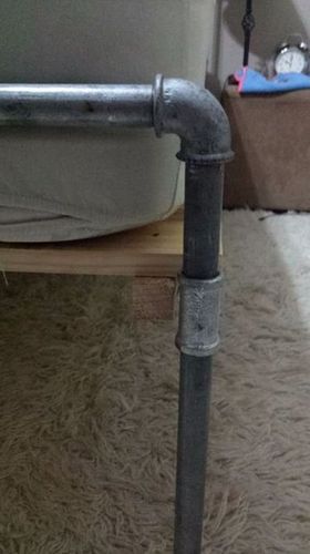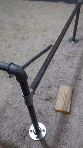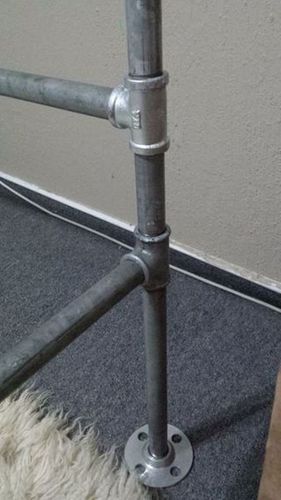 Для ножек использовались трубы с двусторонней резьбой, поэтому на нижний край навинтите фланцы из нержавейки, чтобы не испортить пол и покрытие на полу.