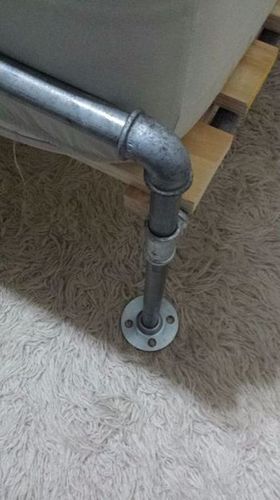 Поскольку оцинкованные трубы, из которых будет сделан каркас кровати, будут пачкать постельное белье, а так же ржаветь со временем, защитите их с помощью бесцветного лака. Только не покрывайте лаком резьбу, иначе соединение труб доставит вам немало хлопот.