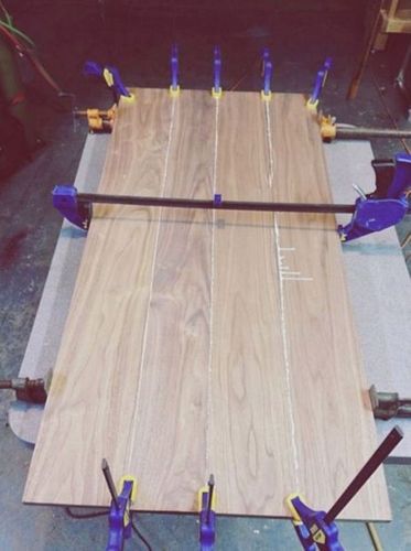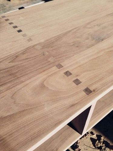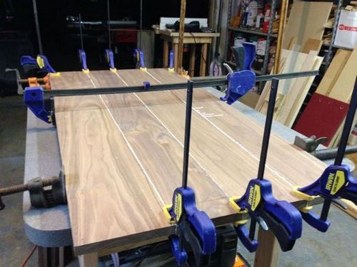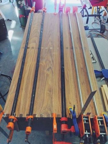 Для того, чтобы соединить готовые склеенные ламели между собой, мы не будем использовать металлические уголки или другие внешние приспособления, на каждой стороне вырезаем пазы и складываем стол, как детский конструктор. Маршрутизатор избавит от проблем с замерами и вырезанием ровных краев.