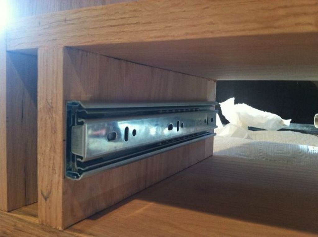 4) Перед тем как собрать полку необходимо прикрепить направляющие, т.к. в дальнейшем это будет сложно сделать. Размещаются они по центру доски.
