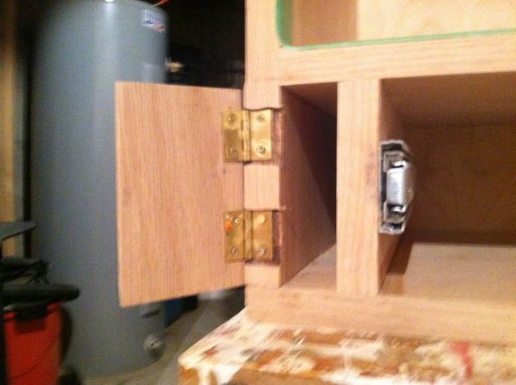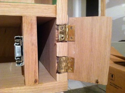 9) В ходе работы было решено отступить от эскиза. Была сделана маленькая полочка с дверцей. В ней могут храниться ручки, деньги или любые другие маленькие вещи. Так, где будут прикреплены петли необходимо вырезать пазы. Затем прикрутить петли на маленькие болты.