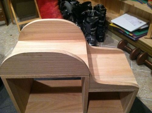 7) Для того чтобы полка выглядела как рояль необходимо разместить декоративные элементы. В данном мастер-классе элементы прикрепляются впереди и сзади полки. На верхней полке в середине можно будет хранить вещи.