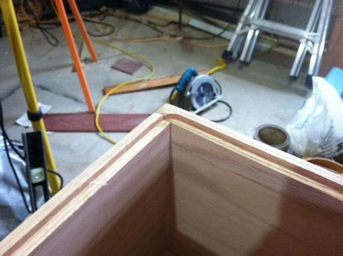 8) Можно оставить книжную полку открытую, но с задней стороной она имеет более привлекательный внешний вид. Вдоль внутренних краев необходимо вырезать паз с помощью инструмента для резьбы по дереву. Паз должен быть 0,7 см в глубину. После того как пазы будут вырезаны необходимо измерить и вырезать заднюю часть полки из фанеры. Затем приклейте фанеру к полке.