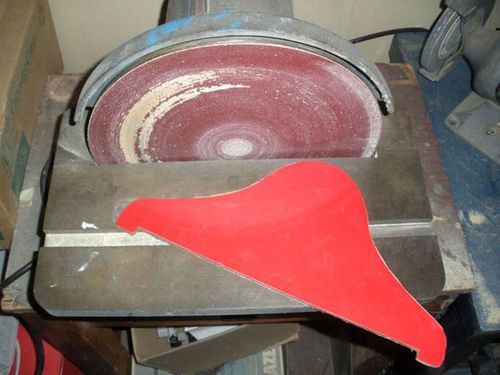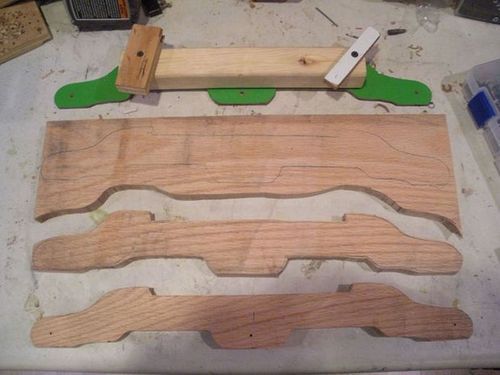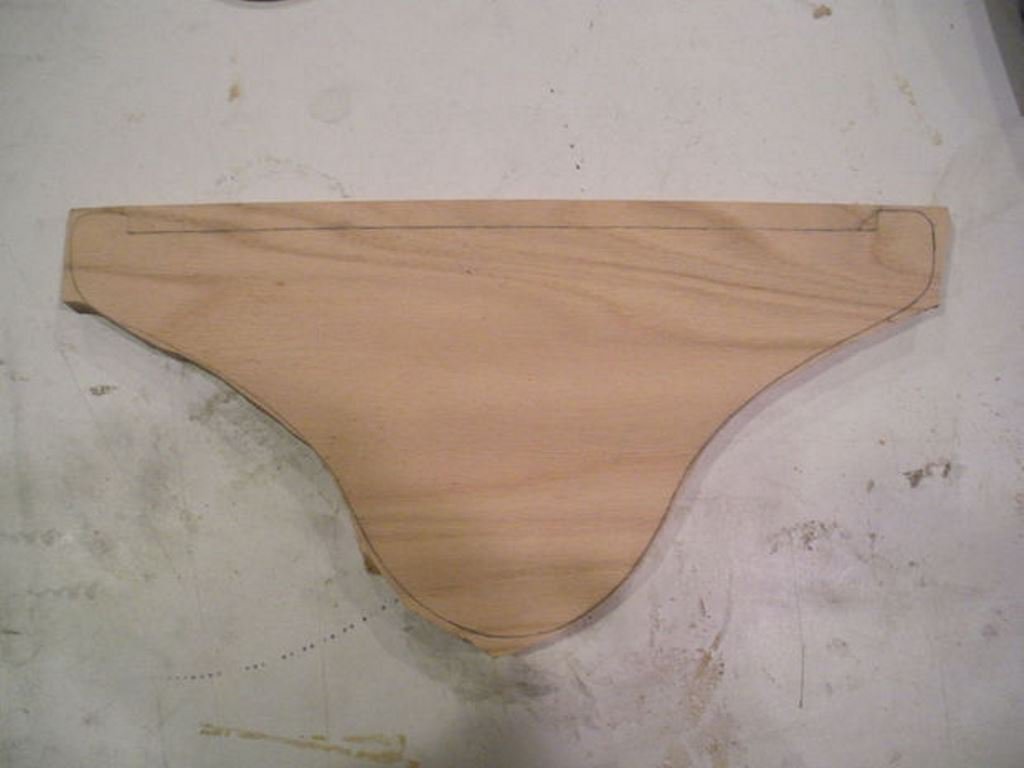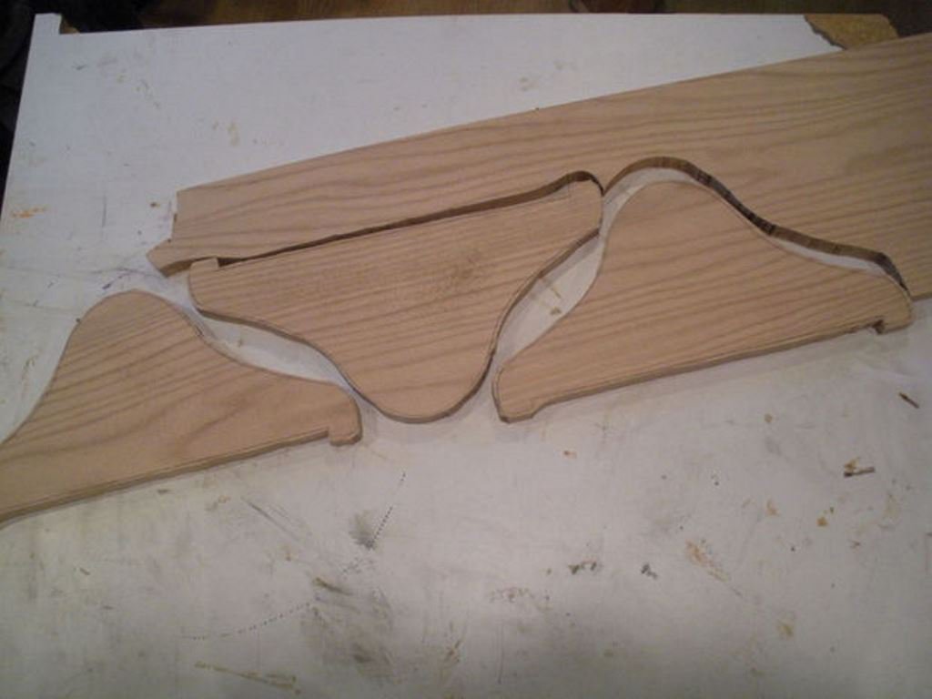 Для начала необходимо изготовить шаблон для кронштейна, а затем вырезать по нему 4 детали с помощью ленточной пилы.