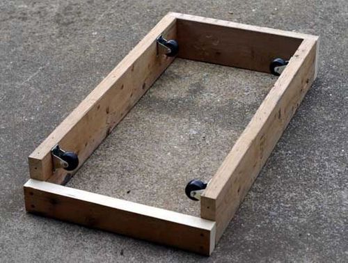 Теперь необходимо разместить и прикрепить колесики внутрь деревянной рамы.
