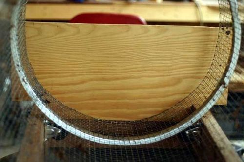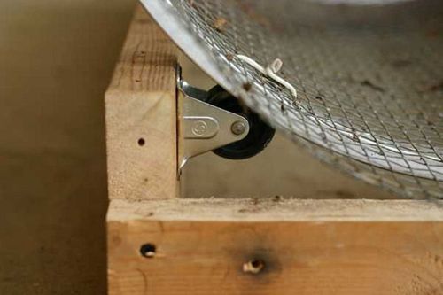 Теперь, когда колесики на месте можно попробовать использовать фильтрующий барабан. Деревянная рама ставится на тачку или изготавливаются специальные ноги. Необходимо чтобы одна сторона барабана была слегка наклонена на одну сторону.