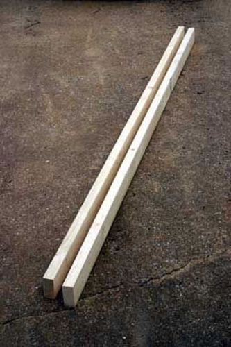 Это довольно простая конструкция, поэтому в детали сильно углубляться не нужно. Необходимо взять брус, нарезать его и сделать прямоугольную раму. В инструкции рама 34 дюйма в длину и 19 в ширину. Обратите внимание, что один брус должен быть ниже на 2,5 дюйма. Эти размеры используются в соответствии с размером обода.