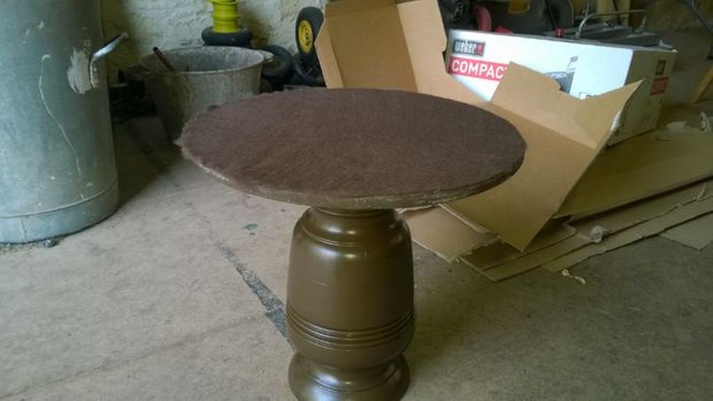 Вырежьте круглый кусок войлока размером с основания и приклейте его к нижней части основания с помощью супер клея. Тем самым стол не сможет поцарапать пол.