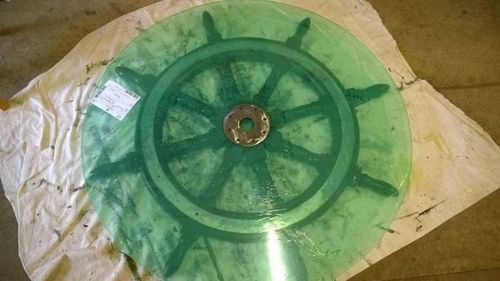 Легче сделать стекло на заказ. Для этого необходимо измерить окружность руля и центральной металлической детали. Стекло должно быть чуть больше, чем размер руля. В середине должно быть отверстие под деталь корабельного руля.